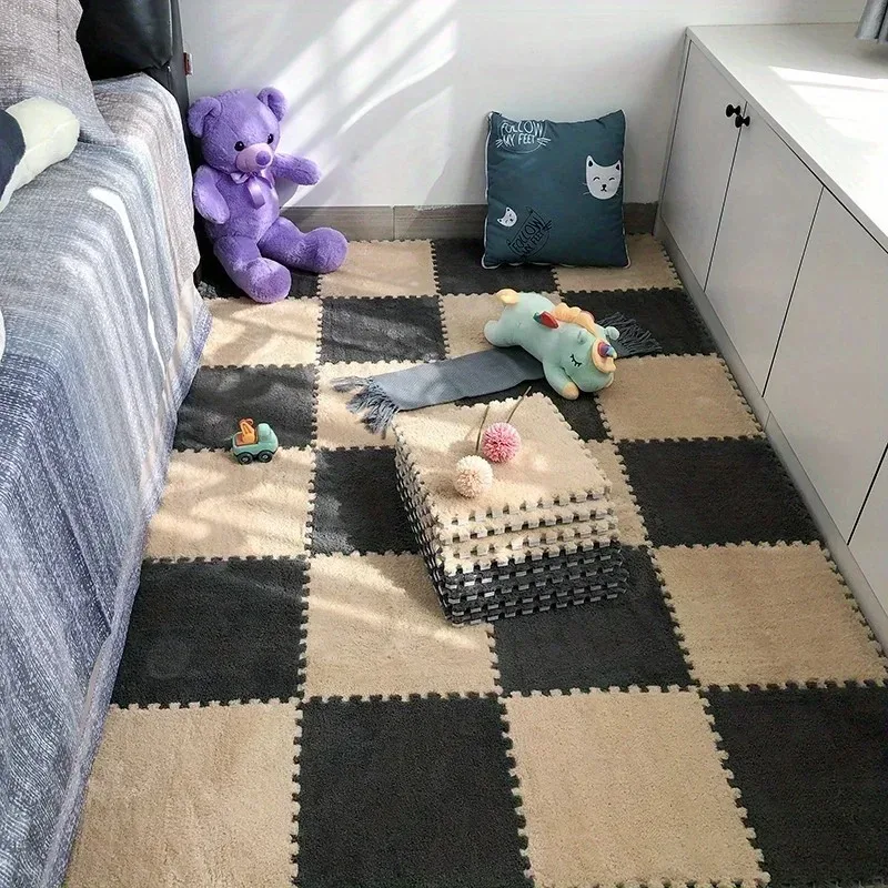 48PCS Dual-Color Interlocking Bedside Carpet Tiles for Bedroom Bay Window Mats Insta-Style Foam Pads - Cuttable & Washable