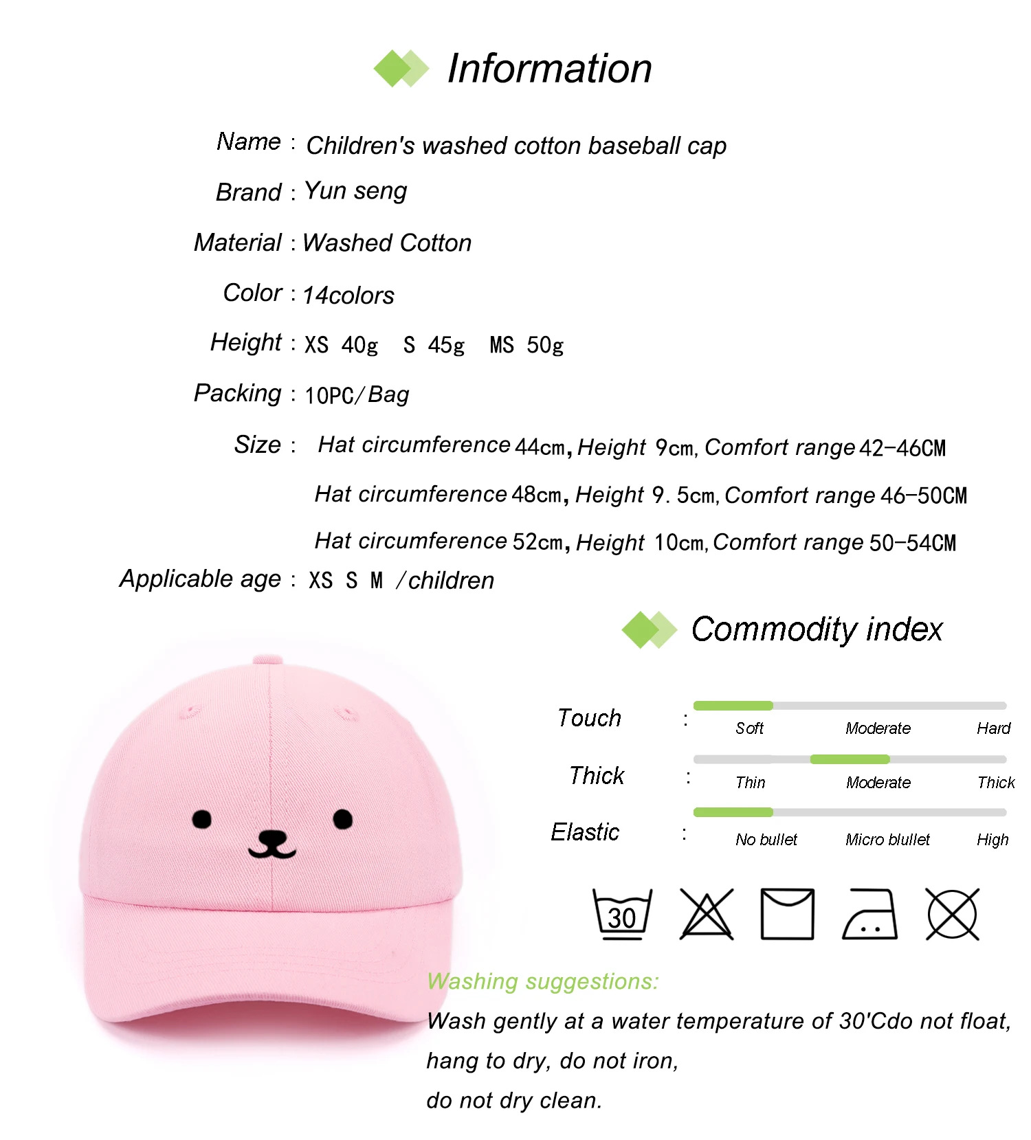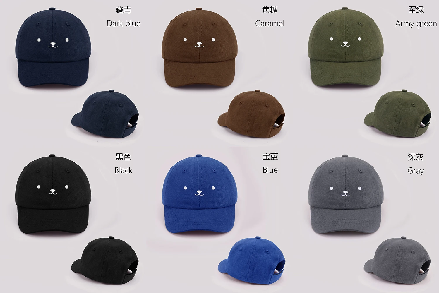 Cartoon Bear Baby Baseball Cap Cute Solid Color Toddler Sun Hat with Ears Summer Adjustable Kids Boy Girl Peaked Cap