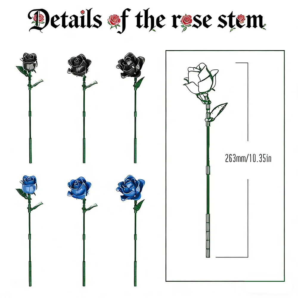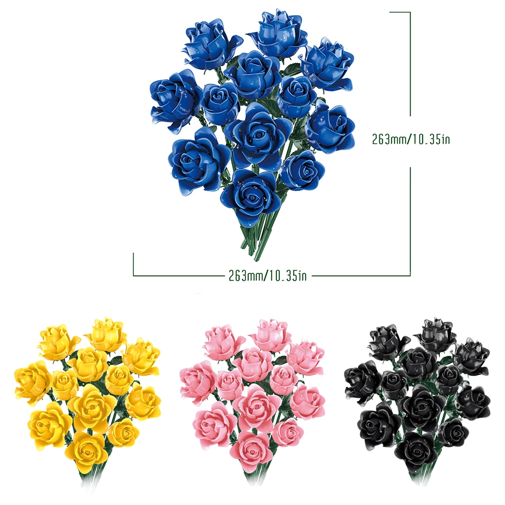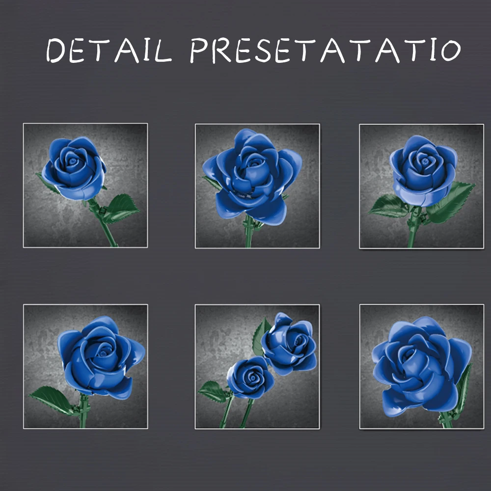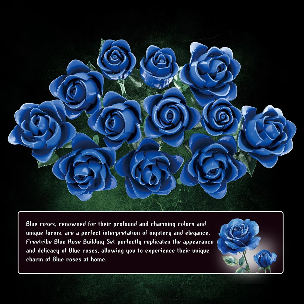 Elegant Blue Roses Bouquet Eternal Building Blocks 585 PCS Valentine's Day Girlfriend DIY Gift MOC Home Decor Ornaments Kids Toy