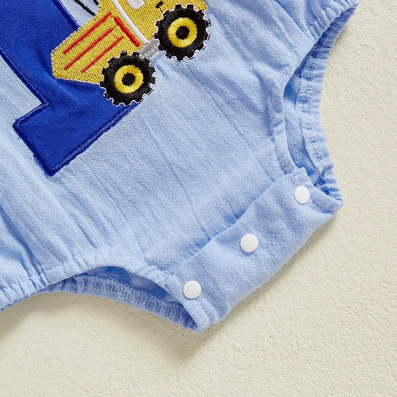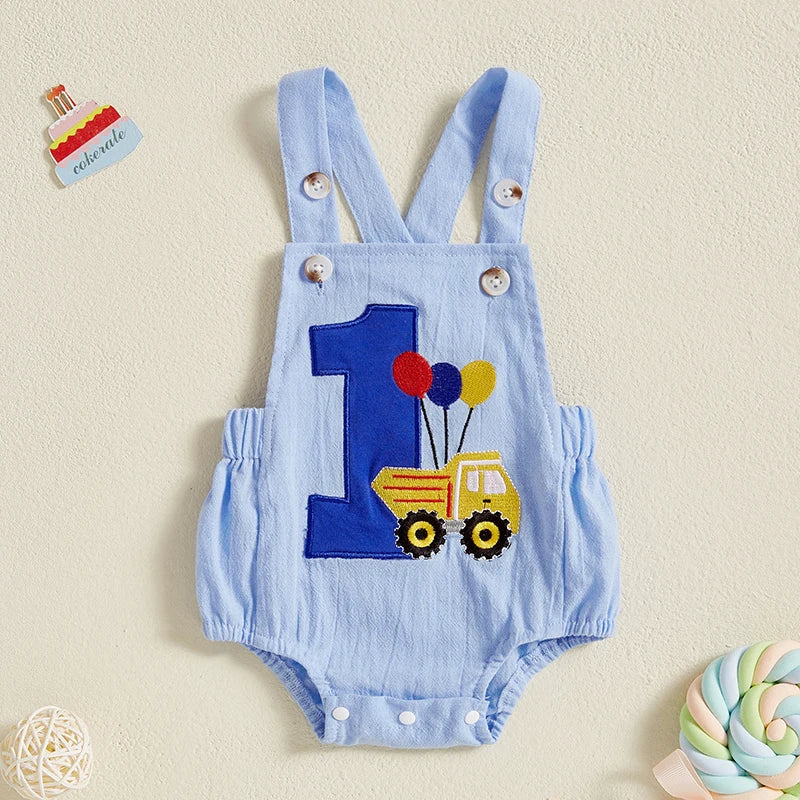 Baby 1st Birthday Overalls Romper Number Embroidery Sleeveless Square Neck Bodysuit