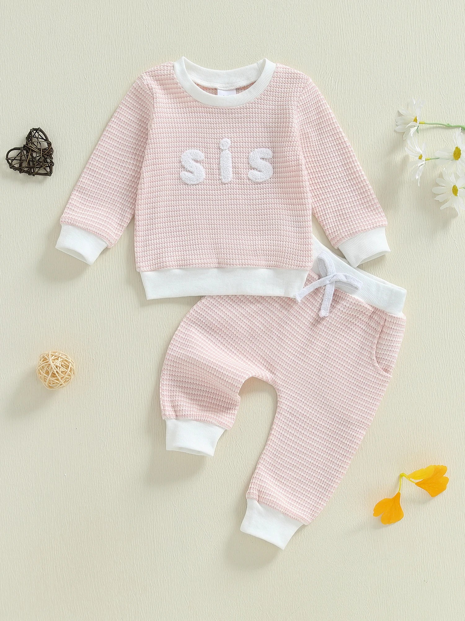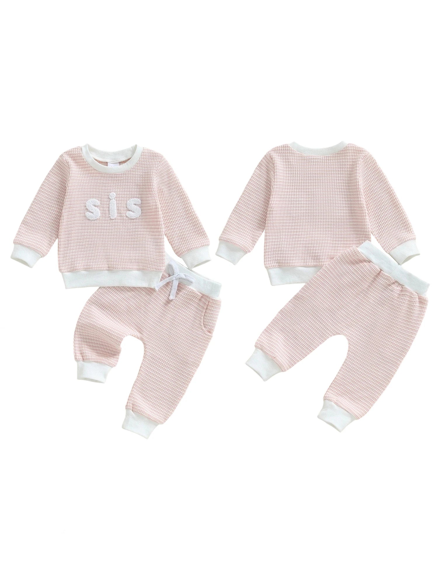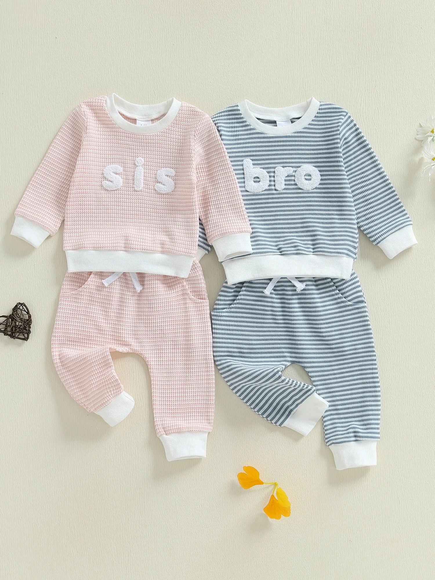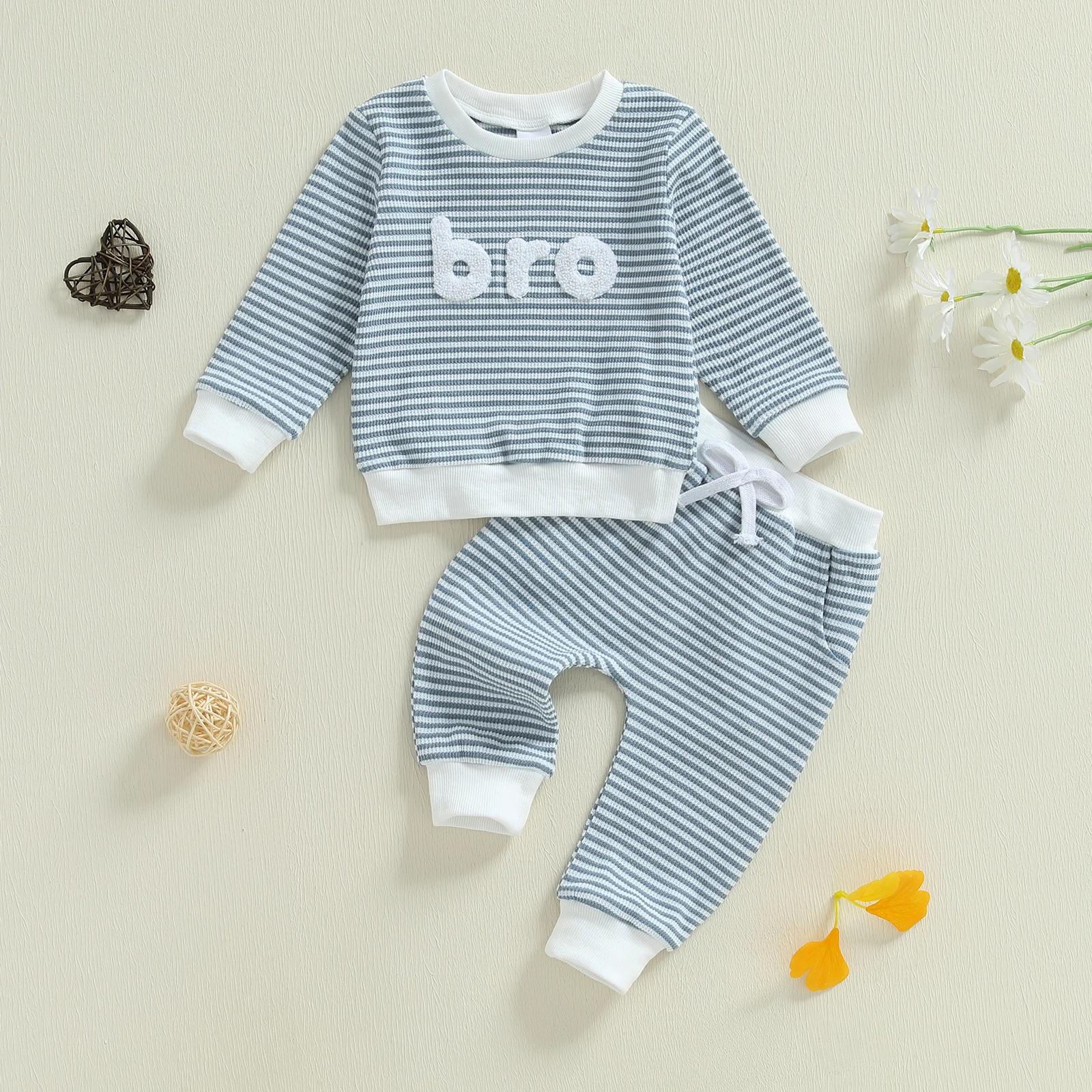 Toddler Baby Striped Set Fashionable Long Sleeve Letters Embroidery Pullover with Pants 2 Pcs Fall Outfit
