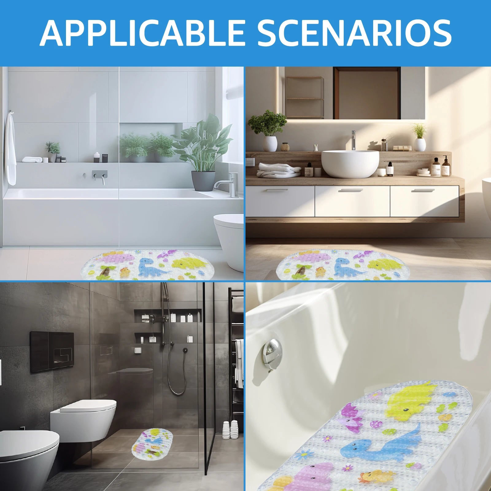 Kids Cartoon Non Slip Bathroom Mat PVC Baby Bath Mat with Suction Cup 69x39cm Oval Baby Bathroom Shower Mat for Household Bath