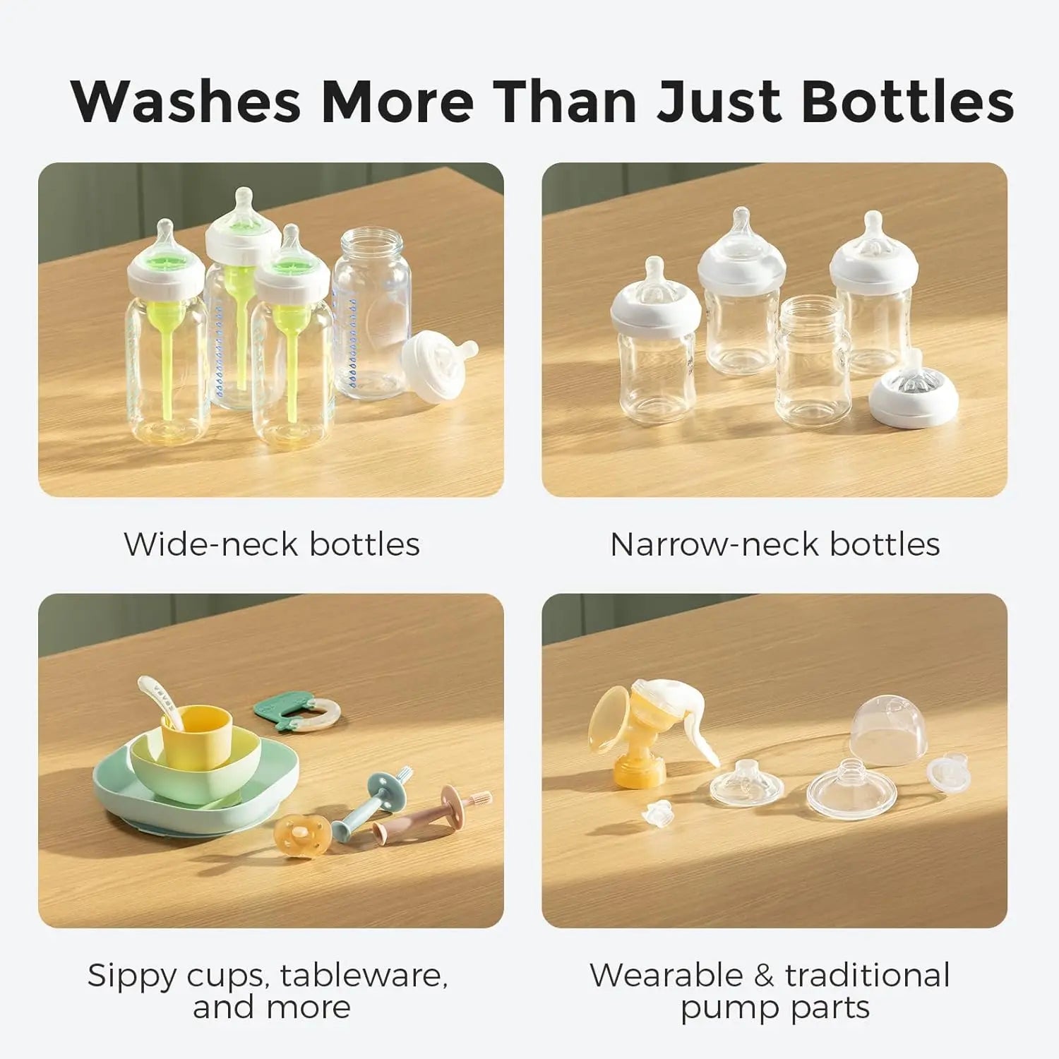 𝐔𝐋𝐓𝐈𝐌𝐀𝐓𝐄 𝐓𝐈𝐌𝐄-𝐒𝐀𝐕𝐈𝐍𝐆 & 𝐂𝐋𝐄𝐀𝐍𝐈𝐍𝐆 𝐒𝐎𝐋𝐔𝐓𝐈𝐎𝐍: Automatically washes, sterilizes, and dries baby bottles, pump parts, baby tableware, and more, saving you precious time to spend with your family.